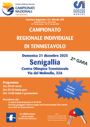 CAMPIONATO REGIONALE CSI MARCHE 2025/2026 TENNISTAVOLO